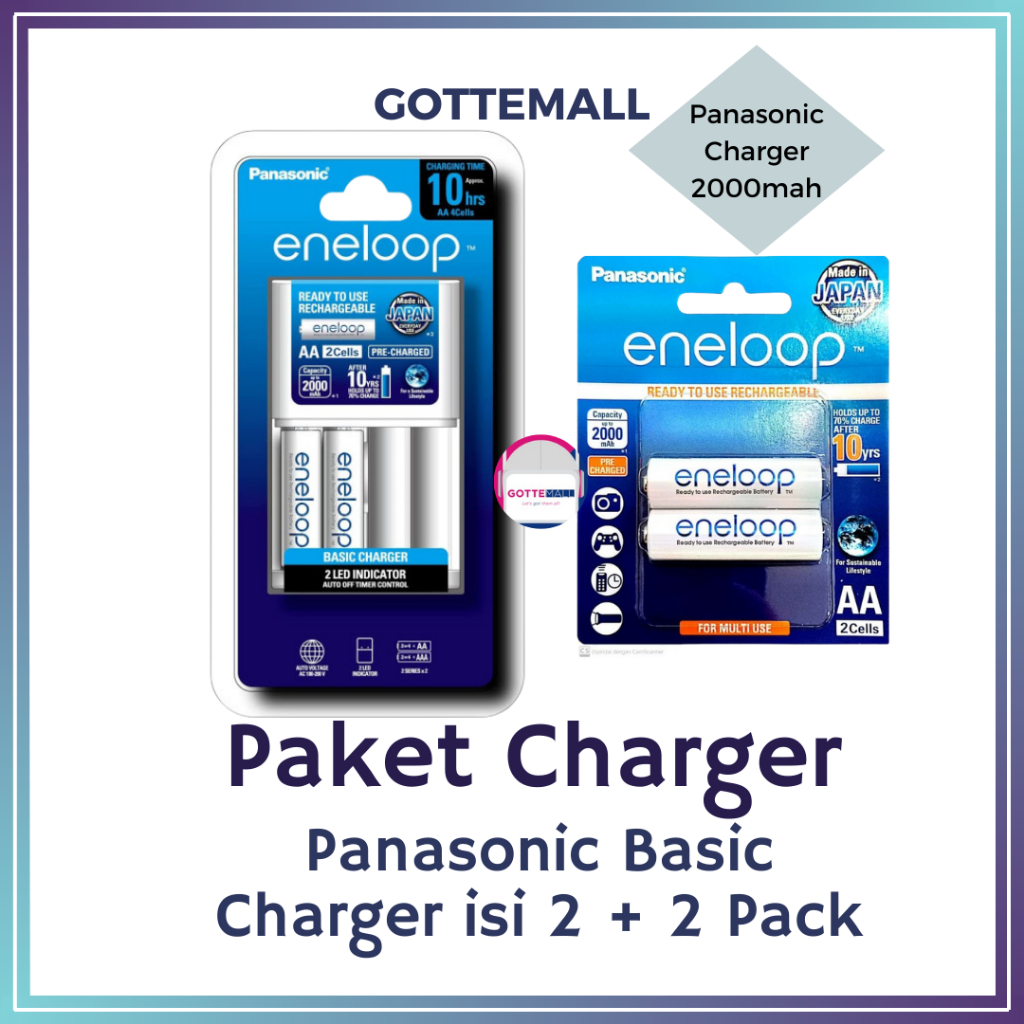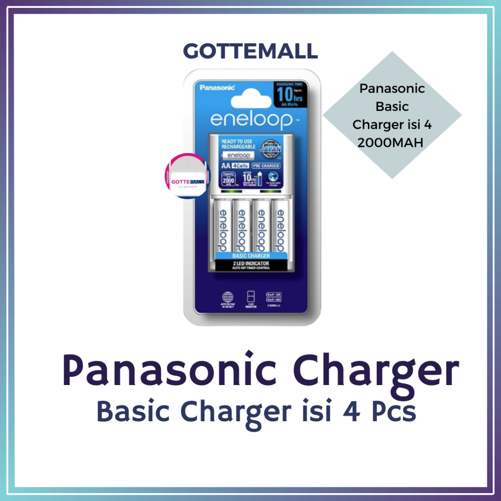 Panasonic Eneloop Basic Charger + 4 baterai AA A2 2000mAh Battery Ready Stock