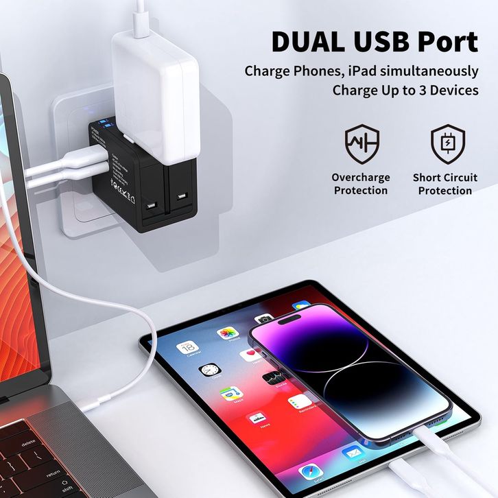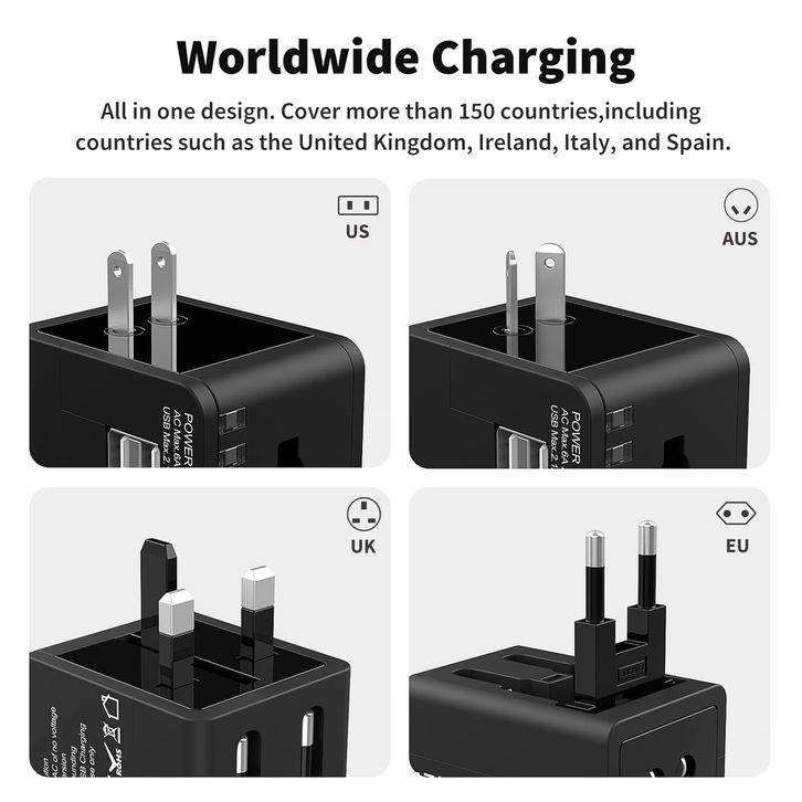 Universal Travel Adaptor 3.6A Fast Charging Colokan Adapter Dual USB Dual Usb International US EU AU UK Serbaguna