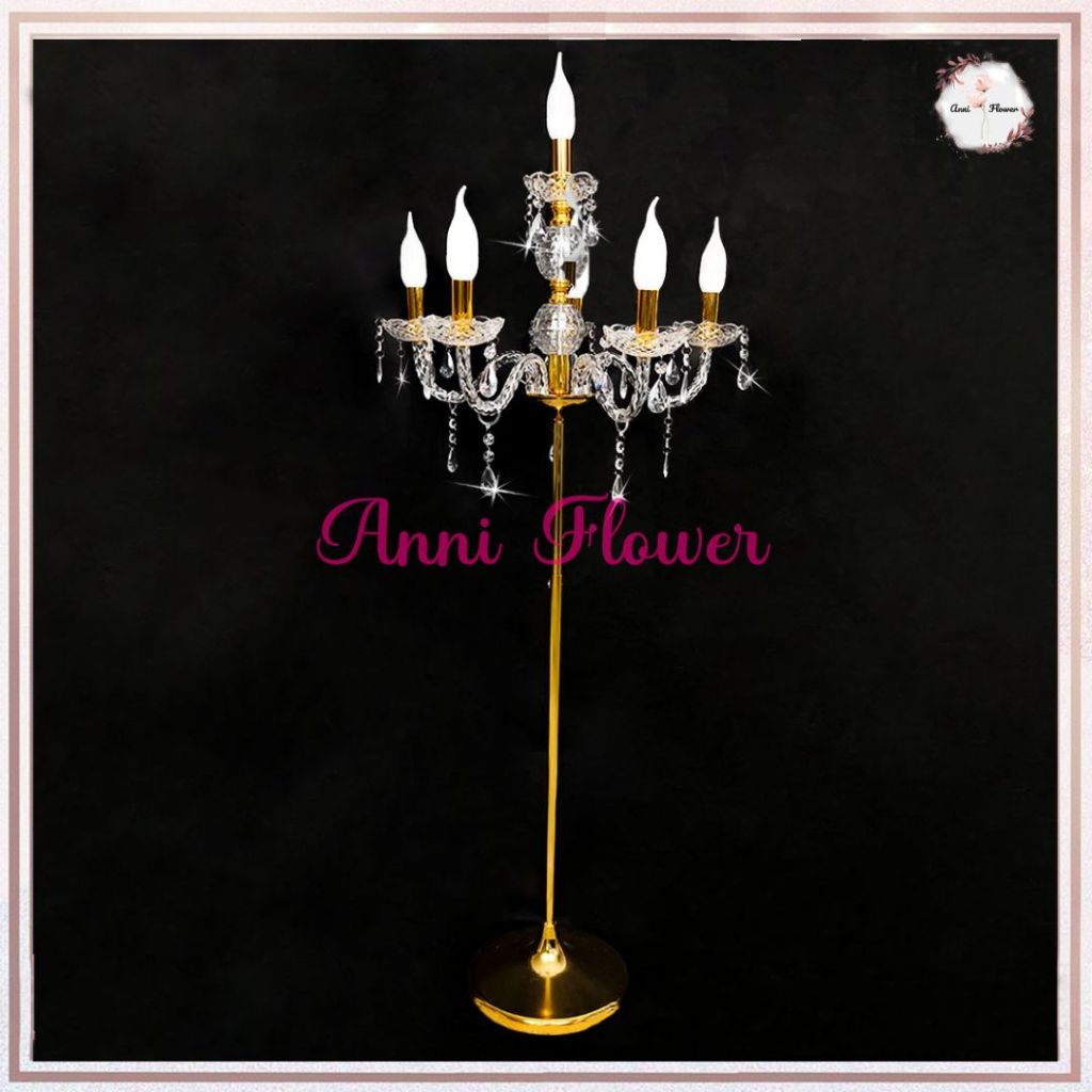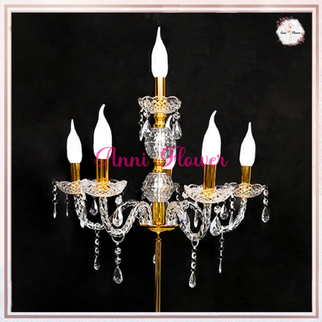 ANNI - (TERMURAH) LAMPU STANDING LILIN CHANDELIER X6 KRISTAL DEKORASI PELAMINAN LIGHTING DECOR PREMIUM