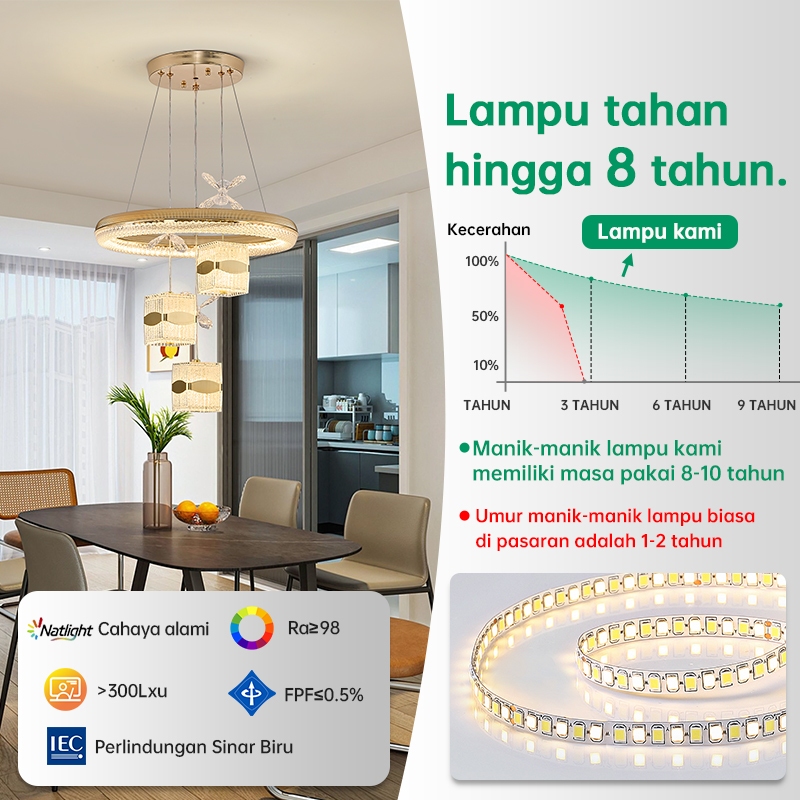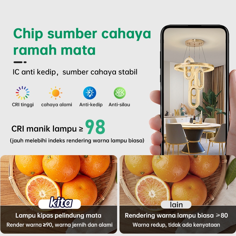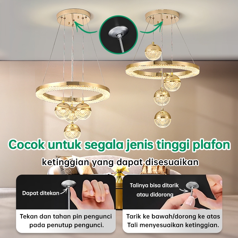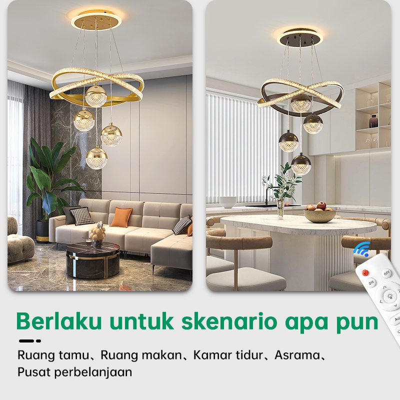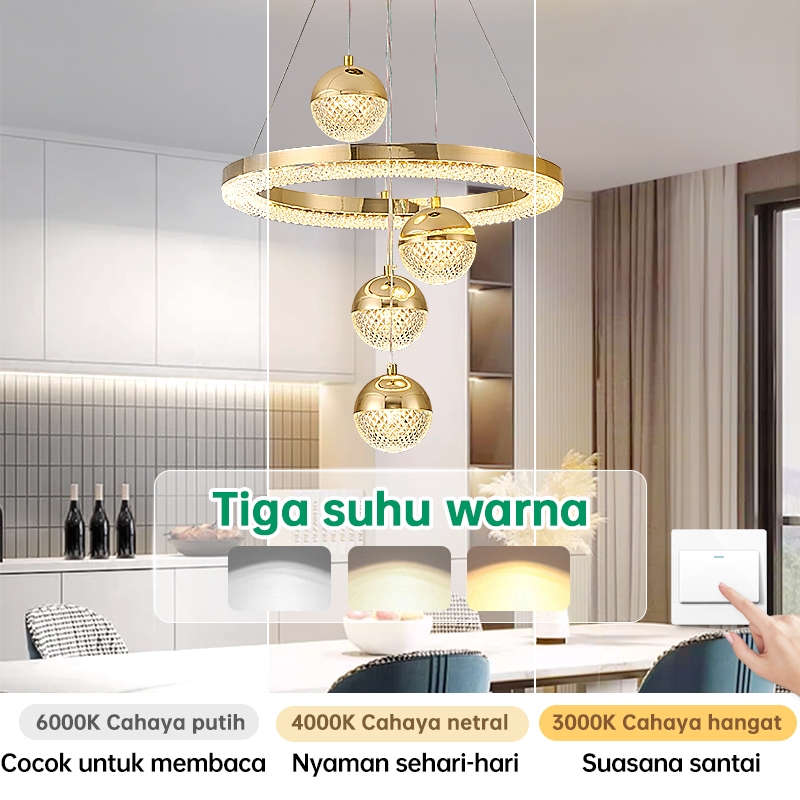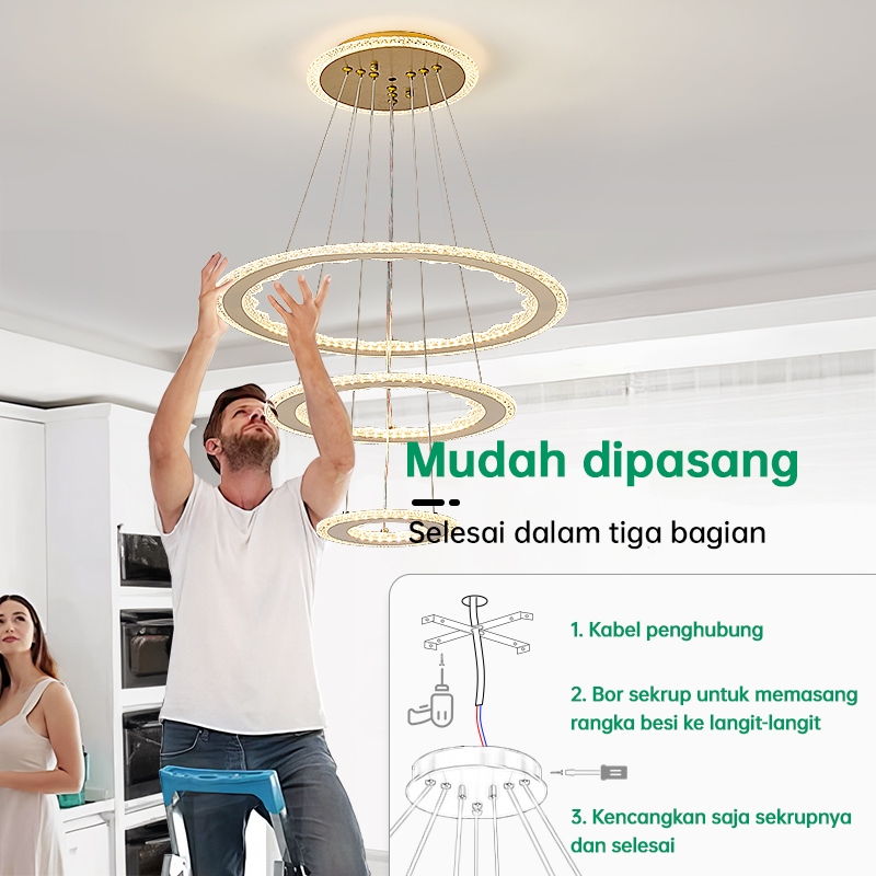 Lampu Gantung Minimalis Kristal 72W Led 3 Warna Ruang Tamu Kamar Tidur Mewah Lampu Hias Gantung
