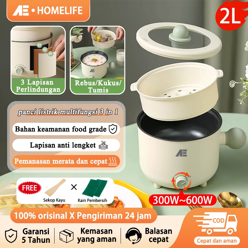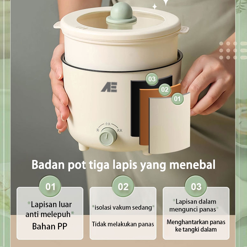 PROMO AE Panci Listrik Serbaguna Low Watt Mini Elektrik Multifungsi 3in1 Kukusan Listrik Lapisan Keramik