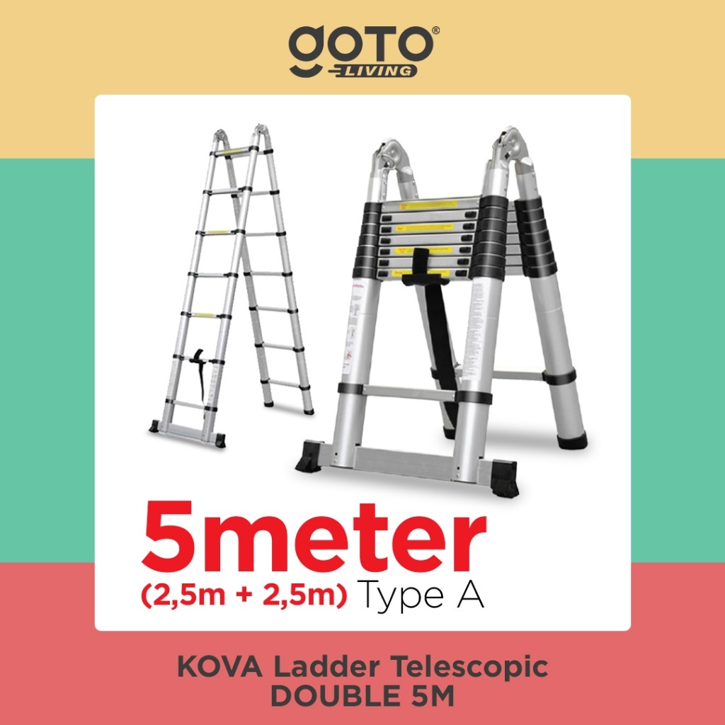Tangga Lipat Aluminium Teleskopik Tipe A 2.5+2.5 = 5M Double