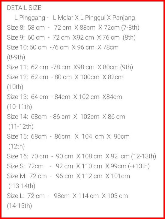 SIZE 8/SIZE 9, SIZE 10/11, SIZE 12, SIZE 13, SIZE 14, SIZE 15, SIZE 16, SIZE S, SIZE M, SIZE L, SIZE XL/SIZE 2XL, SIZE 3XL