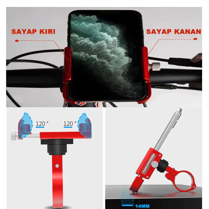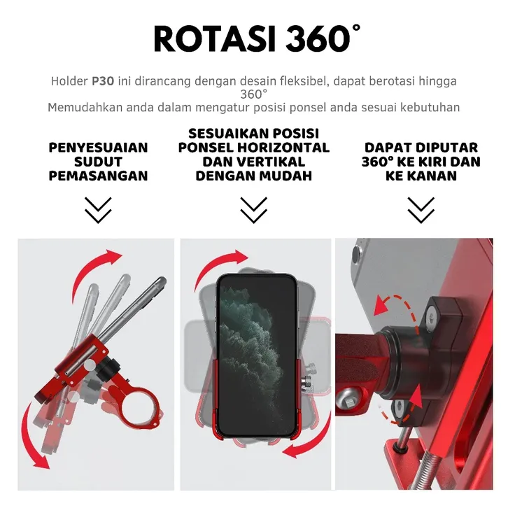 HOLDER HP DI MOTOR P30 + BREKET SET DUDUKAN STANG HP DI MOTOR ALUMUNIUM ALLOY 360 DERAJAT HOLDER