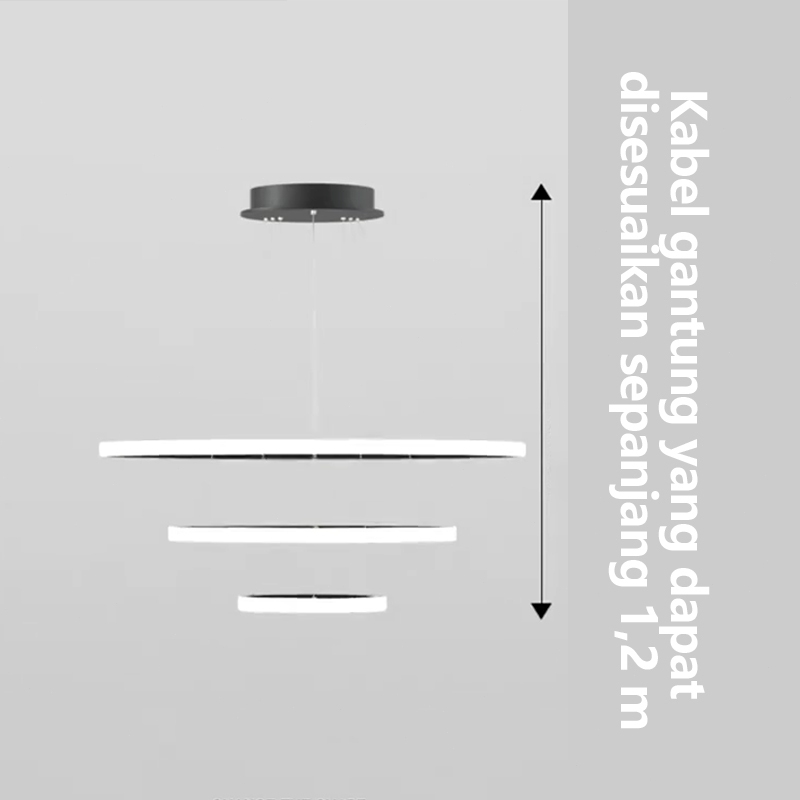 Lampu Gantung LED Edisi Rumah Modern Mewah 3-Cincin Lampu Gantung Elegan Bulat Lampu gantung Tiga Warna Cahaya Ruang Tam