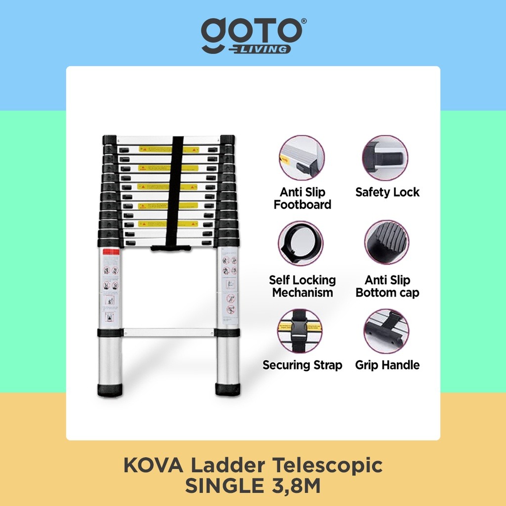 Kova Tangga Lipat Aluminium Teleskopik 3.8M Single Telescopic Ladder