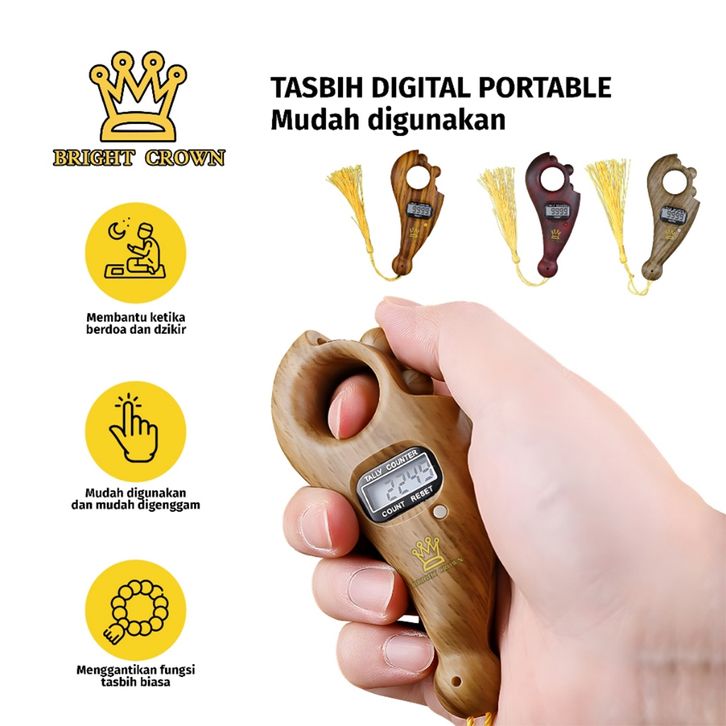 Bright Crown Tasbih Digital Kayu Modern Alat Hitung Tasbih Premium Import 4 WARNA