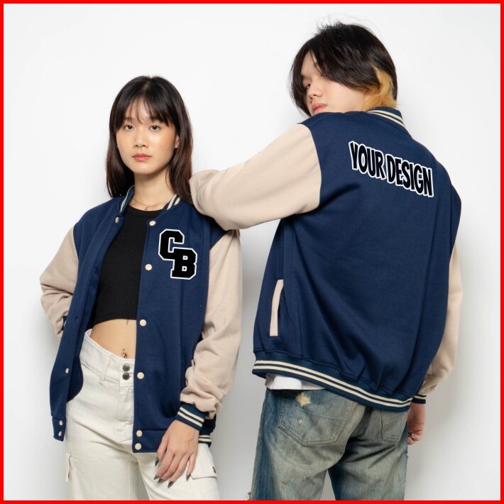 Custom Jaket Varsity Baseball Sablon Bordir Pria Wanita M