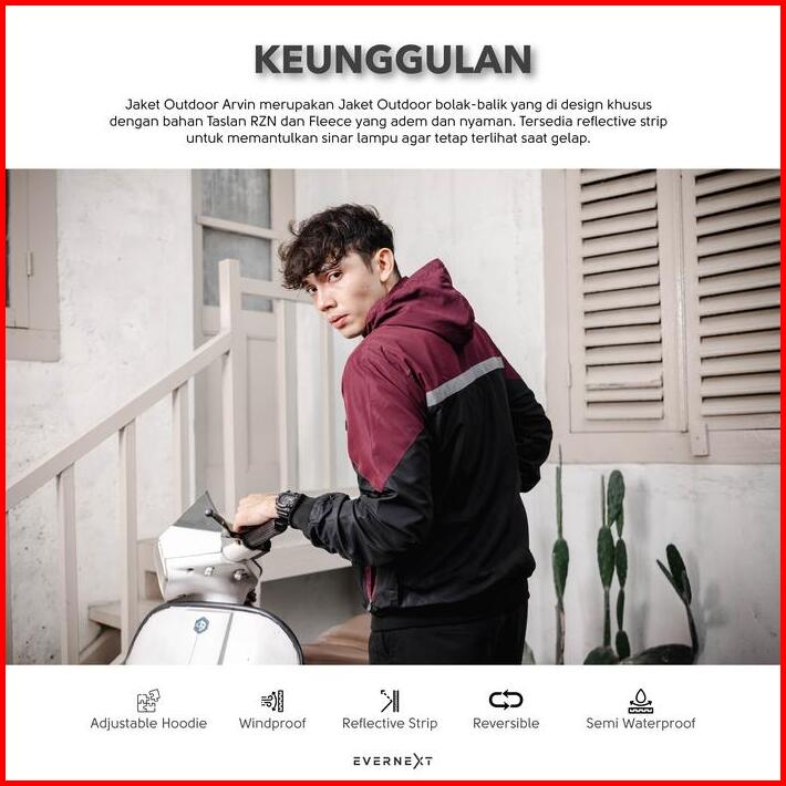 Evernext Jaket Bolak Balik Pria Jaket Motor Cowok Jaket Outdoor Arvin Reversible Outer Tebal Dalam Fleece Jaket Water Re