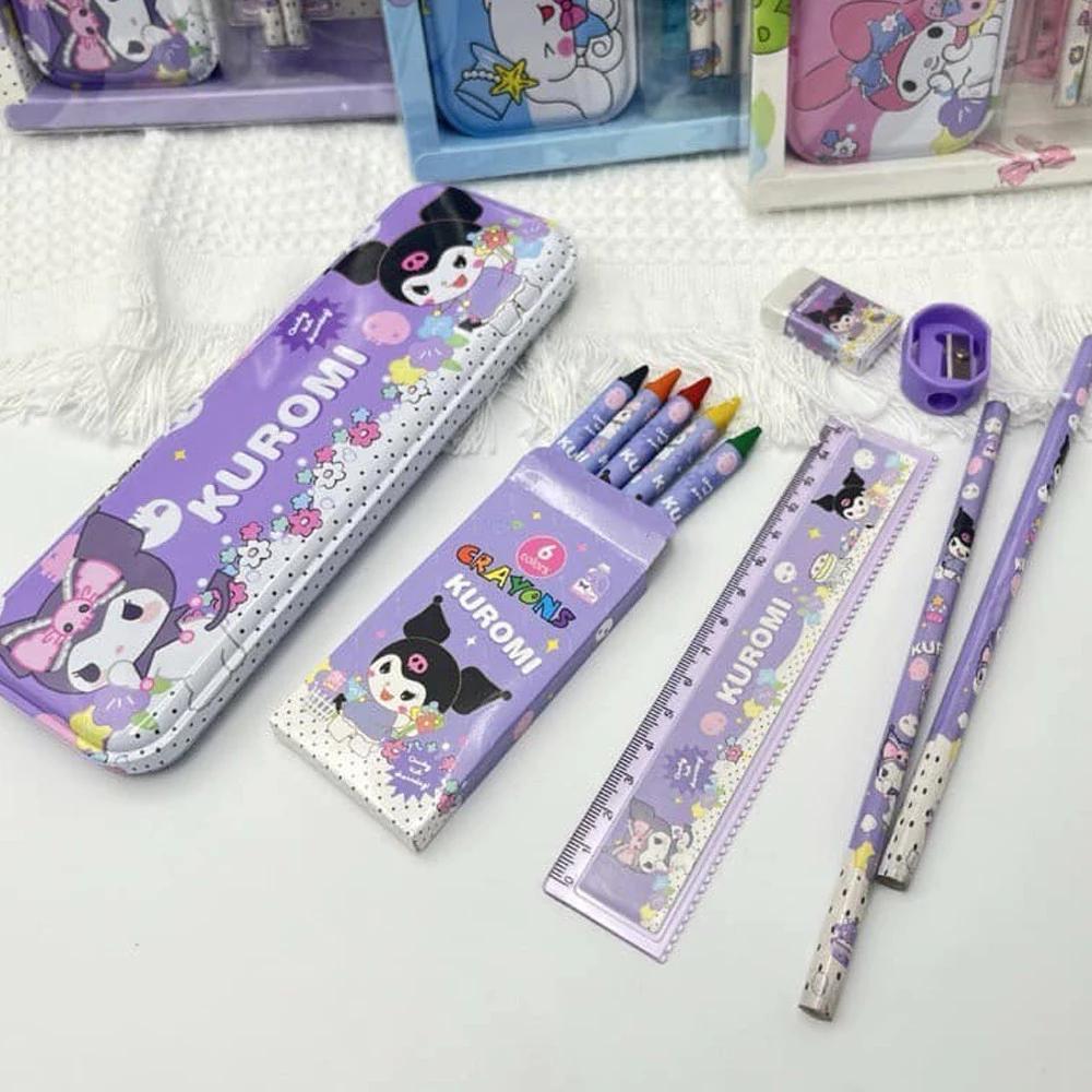 Kotak Pensil Anak Set 7 in 1 Stationery Untuk Hadiah Anak Sekolah Sanrio Alat Tulis Set Kotak Pensil Karakter Kuromi