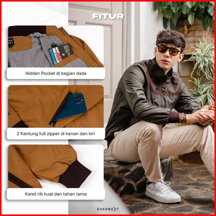 Evernext Jaket Pria Jaket Harrington Combie Jaket Waterproof Casual Pria Jaket Motor Windproof Jaket Outdoor Outer Distr