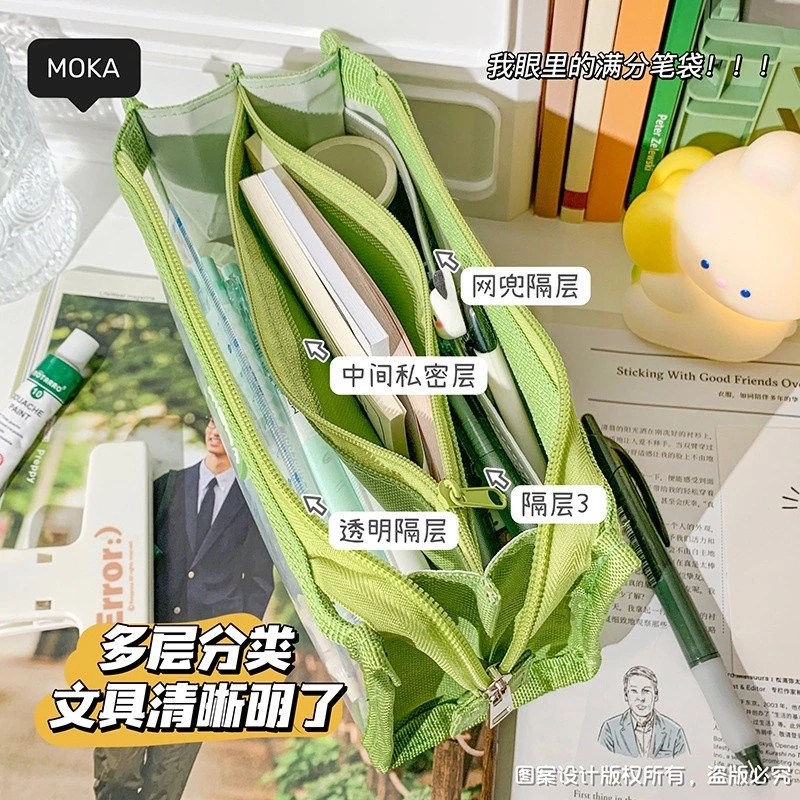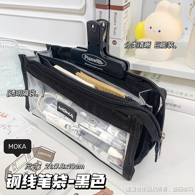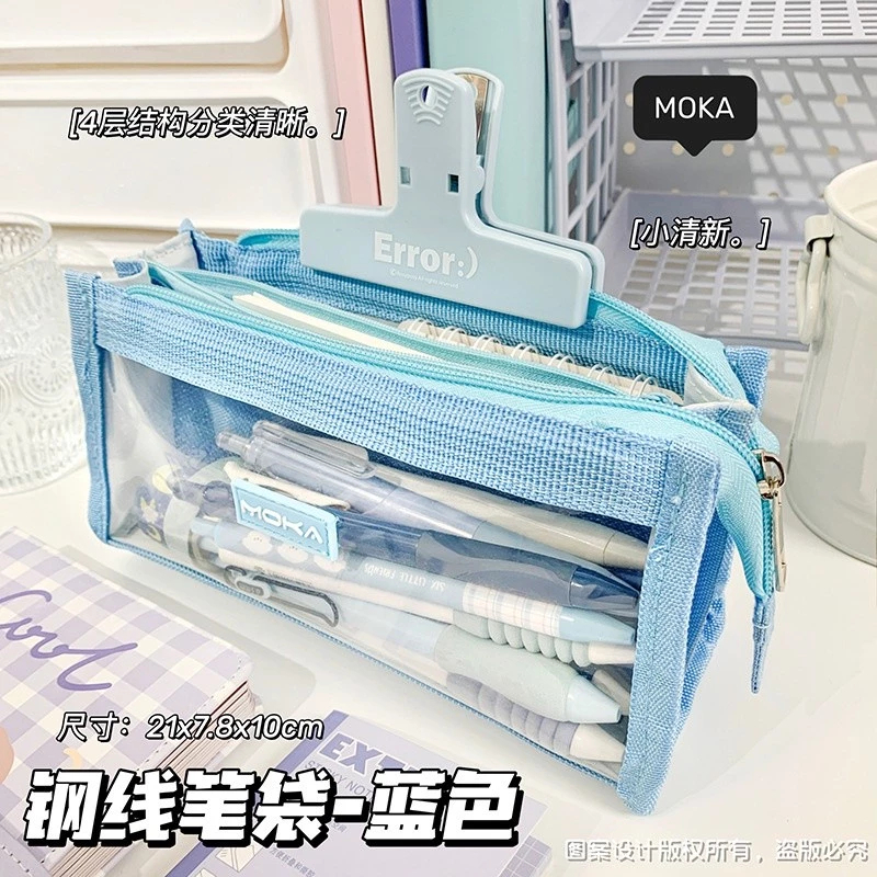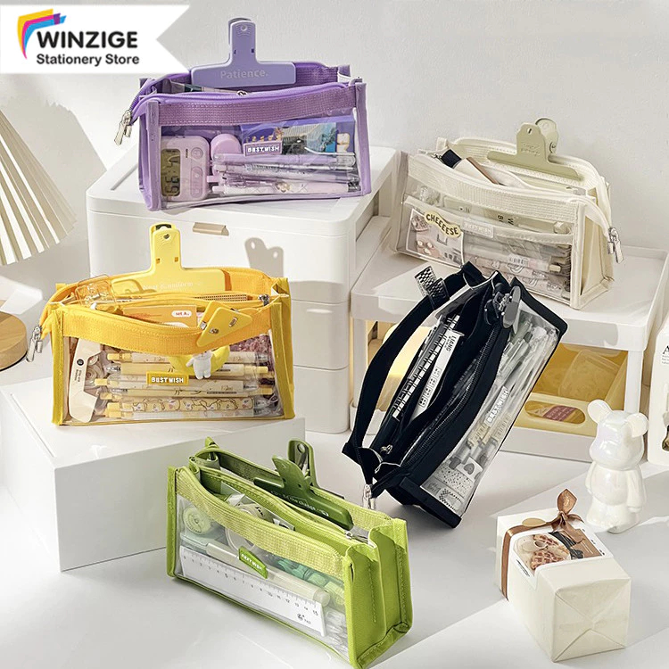 Tempat Pensil Anak Perempuan Transparan Aesthetic Korean Style Pen Pouch Kotak Pensil Multifungsi Stationery Organizer
