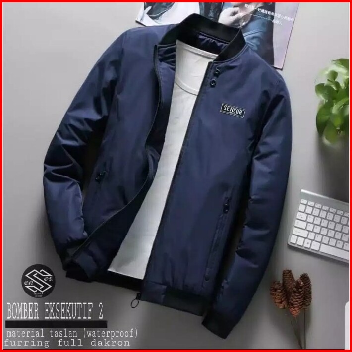 Jaket Bomber Taslan Polos Pria Jaket Bomber Eksekutif Anti Air