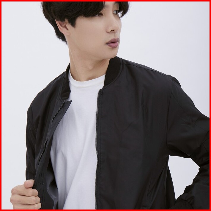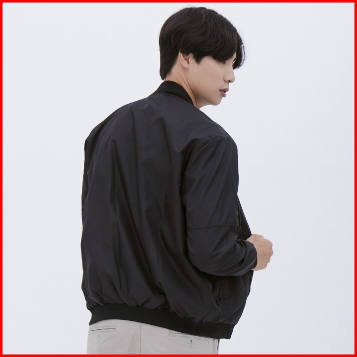 M231 Jaket Pria Taslan Bomber Panjang Hitam 1758b