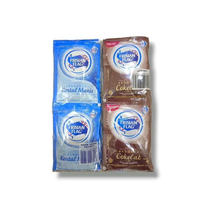 PAKET HEMAT 24 SACHET / 4 RENCENG SUSU FRISIAN FLAG BENDERA KENTAL MANIS SACHET 38G FOOD MILK BAKING BERAT ETAWA - COKLAT