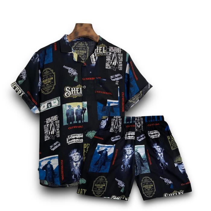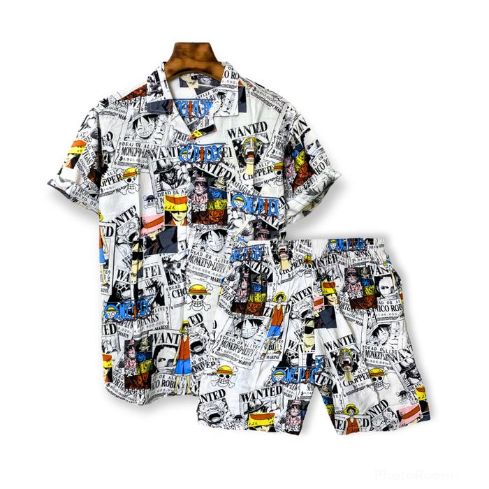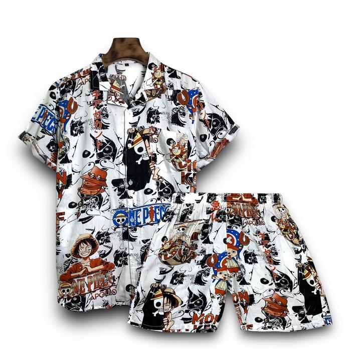 SETELAN KEMEJA RAYON ONESET CELANA PENDEK PIYAMA PRIA WANITA D3W4SA M