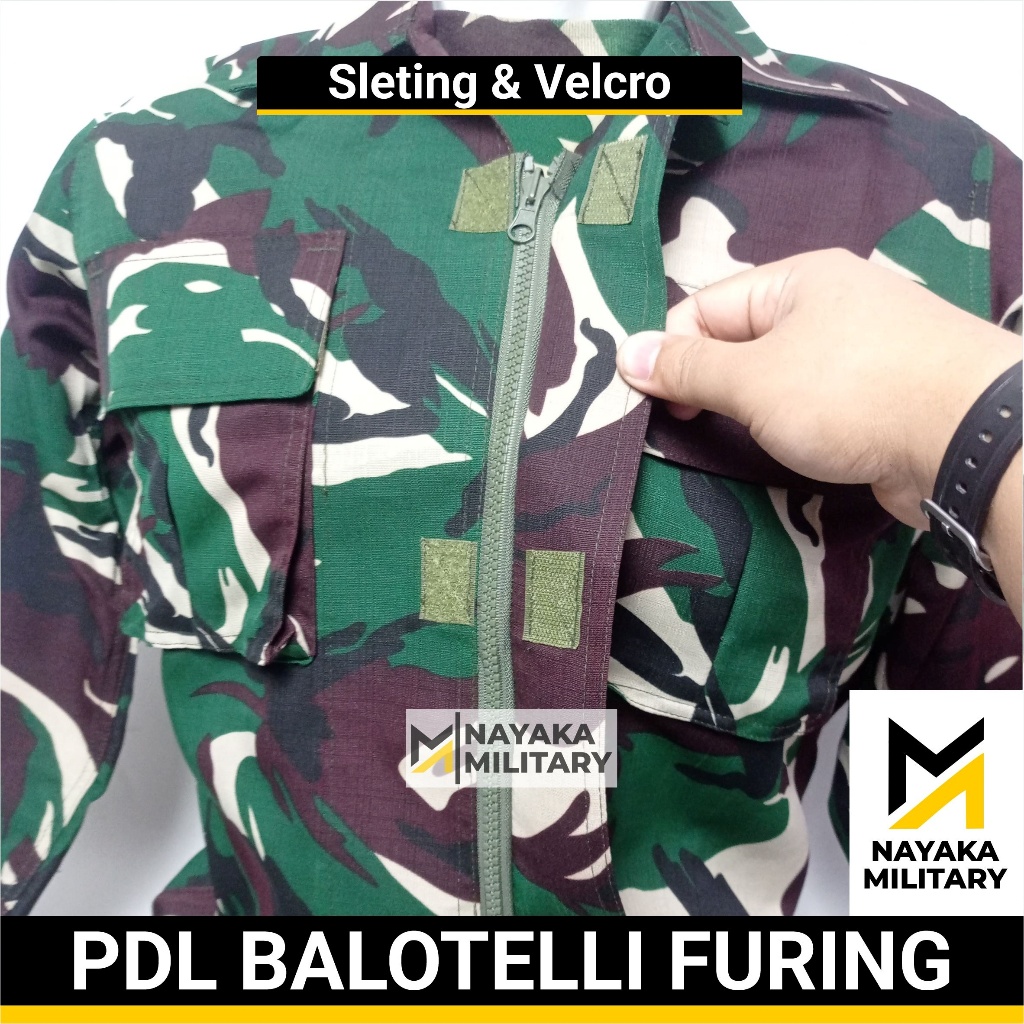 Baju PDL Balotelli Furing Sleting Seragam Tentara Loreng TNI Malvinas Setelan Pakaian Lapangan Stelan Baloteli Puring Re
