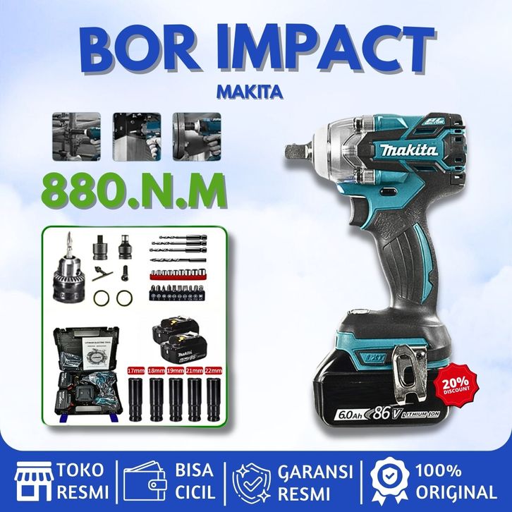 Makita Mesin Bor Impact Multifungsi Bor Listrik 1 Set Lengkap Cordless Ori Apr Bosch Jld Bor Baterai