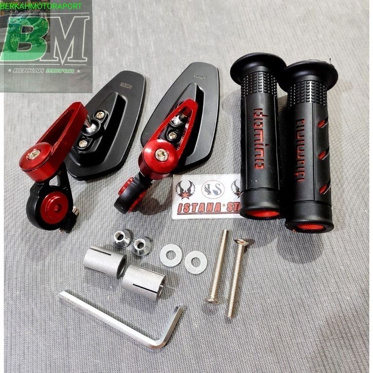 paket variasi spion jalu oval RACING Hapaket variasi spion jalu oval RACING Handgrip Dominondgrip Domino Sisik universal