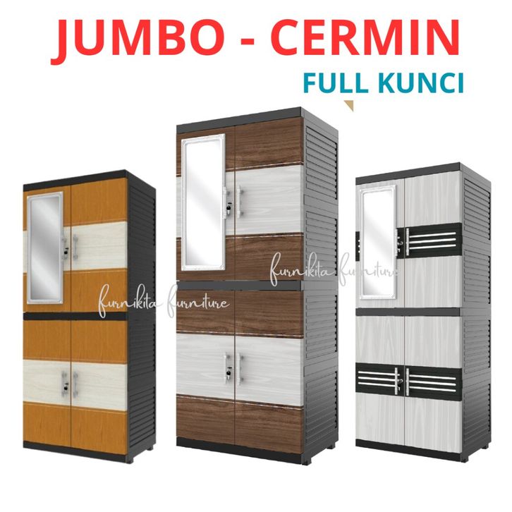 JUMBO LEMARI PAKAIAN PLASTIK NAIBA MSC FIT CERMIN SUSUN 4 MODERN - FULL KUNCI