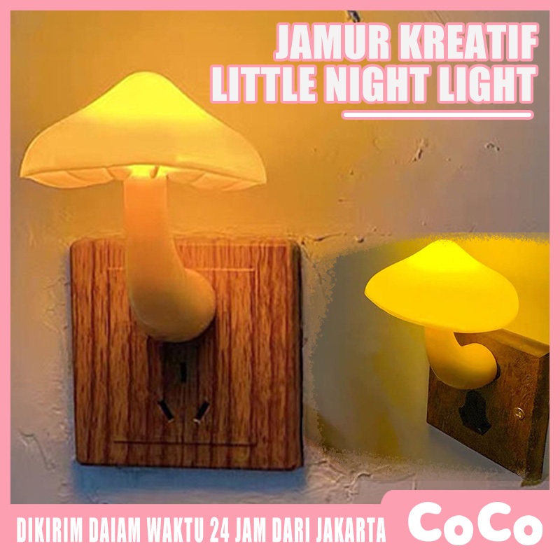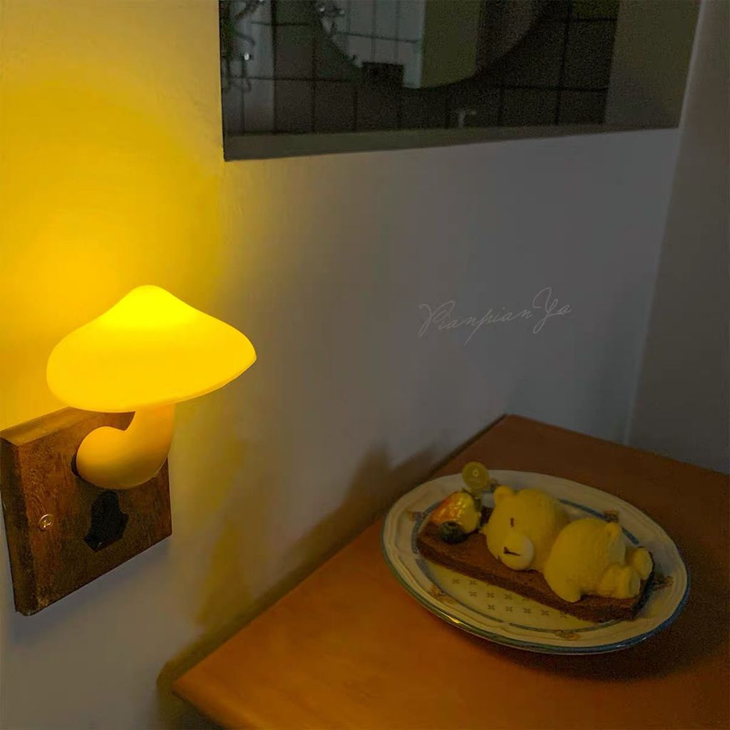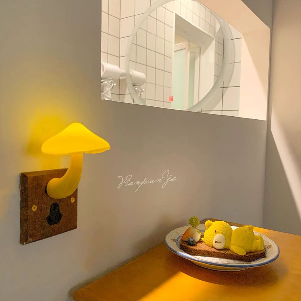 Kuning Bentuk Jamur Lampu Tidur Dekorasi LED Sensor Cahaya Gelap Terang 1W