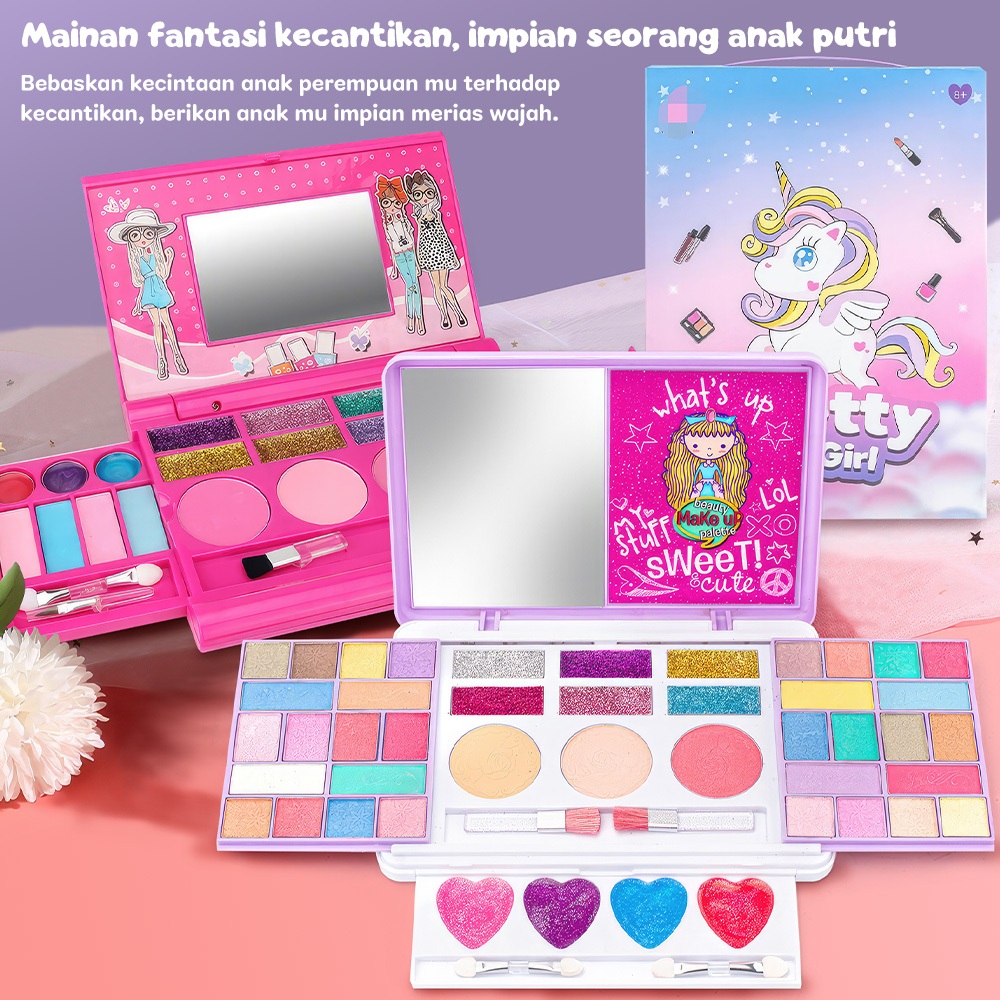 Wetech Girls Makeup Toys Kosmetik Kotak Bermain Princess Makeup Girl Toy Play Set Lipstik Eye Shadow Safety Kit Mainan T