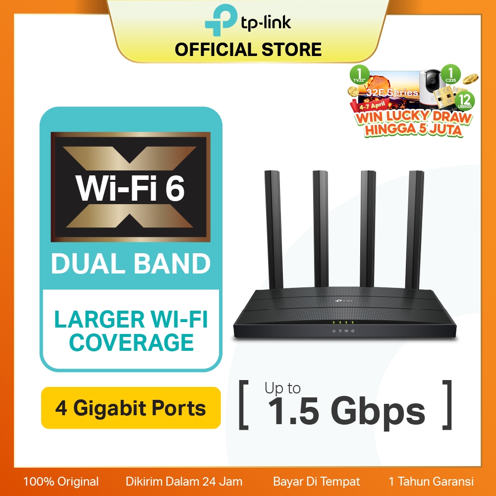 TP-Link Archer AX12 AX1500 WiFi 6 Router Dual Band Gigabit Mesh Wireless Ruter Access Point Tether Ready Stock