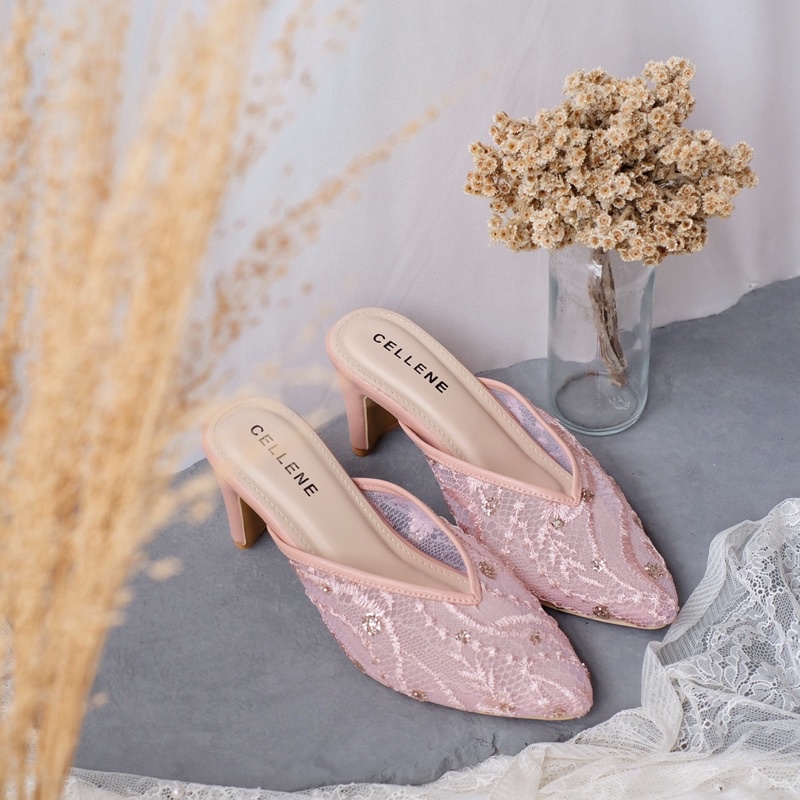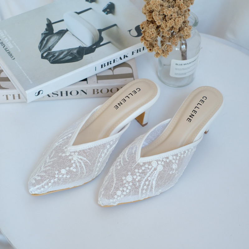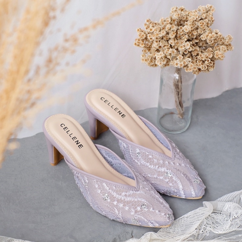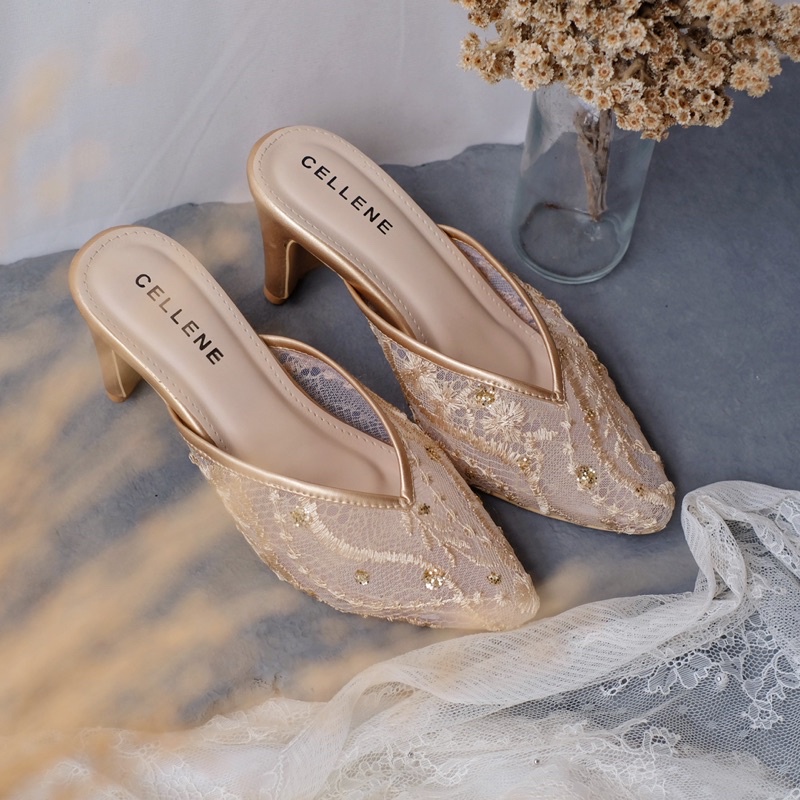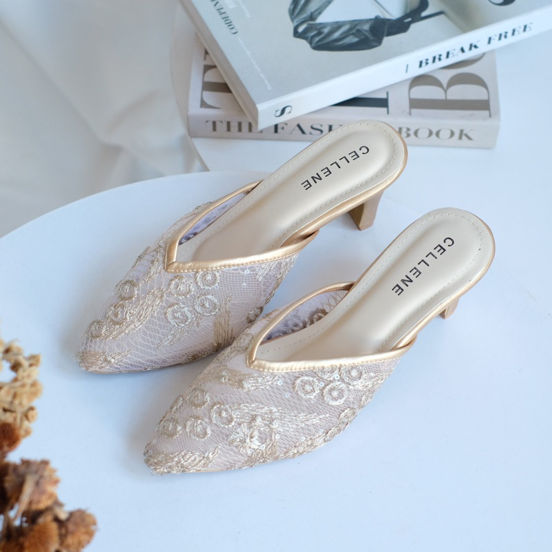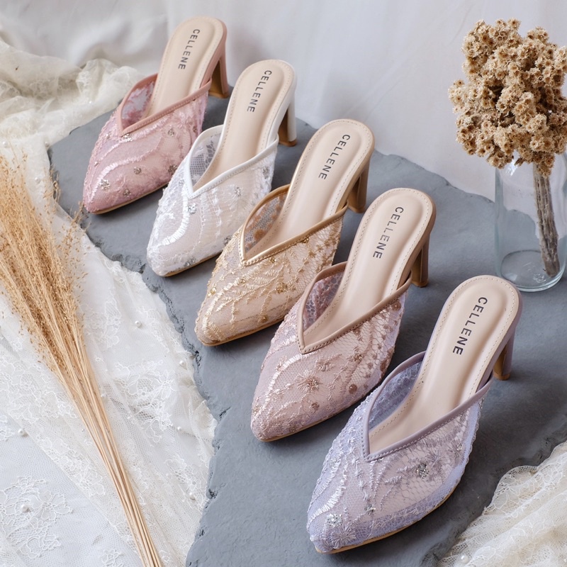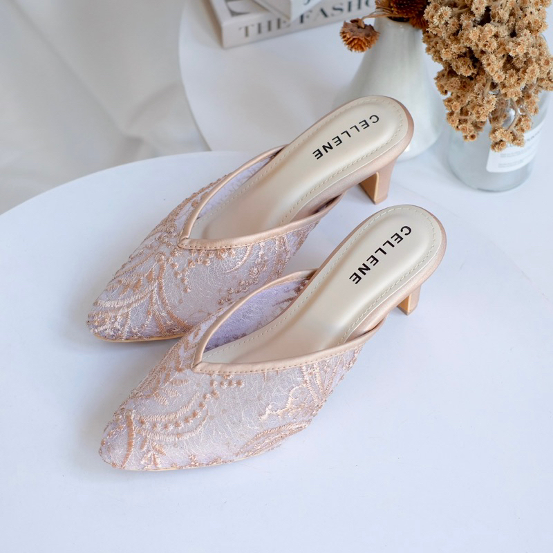Sepatu Pesta Wanita Heels Brukat Heels Kondangan Cellene Velo Lace Heels brukat heels wanita 7cm wedding shoes