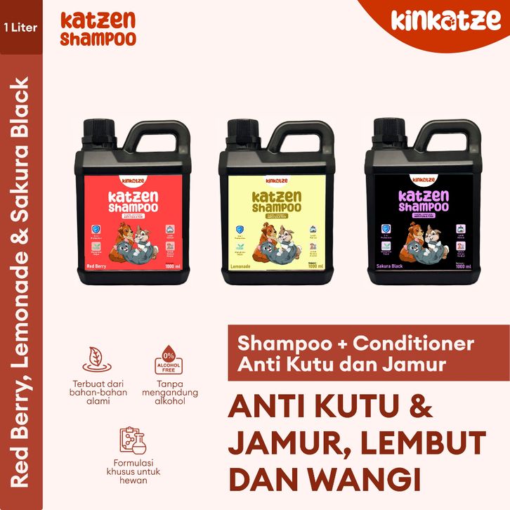 KINKATZE Shampoo Conditioner Anti Kutu Hewan Peliharaan 1 Liter Sabun Kucing Anjing Anti Gatal Melembutkan Bulu