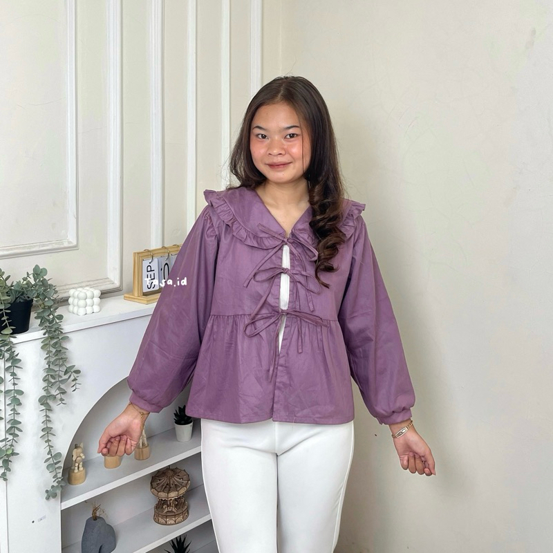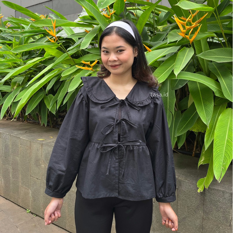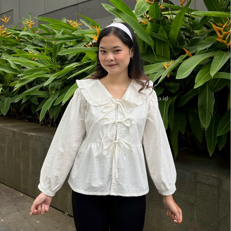 (Gratis Ongkir) Atasan Wanita Coquette Tangan Panjang - Blouse Korea - Ribbon Top y2k - Baju Tali