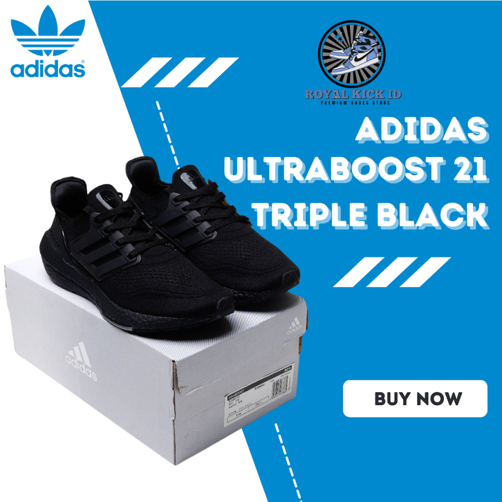 Sepatu Sneakers Pria Wanita Adidas Ultraboost 21 Triple Black Kualitas Premium BNIB Promo Casual Best Seller