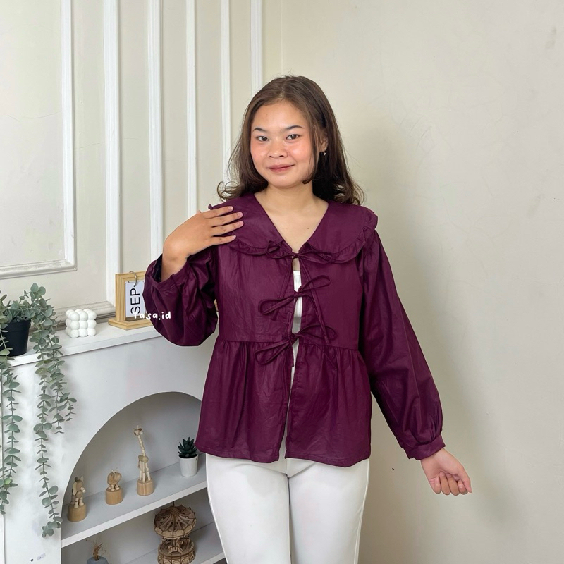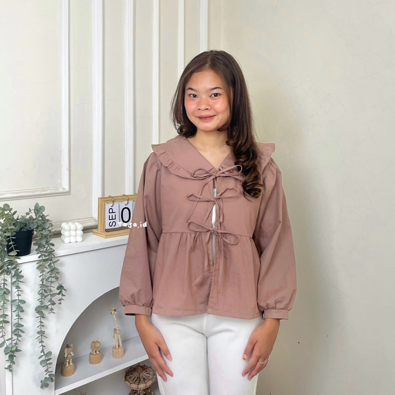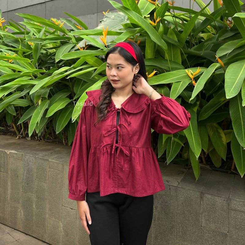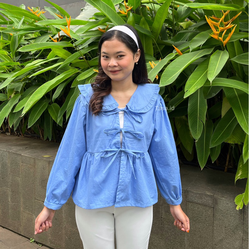 (Gratis Ongkir) Atasan Wanita Coquette Tangan Panjang - Blouse Korea - Ribbon Top y2k - Baju Tali