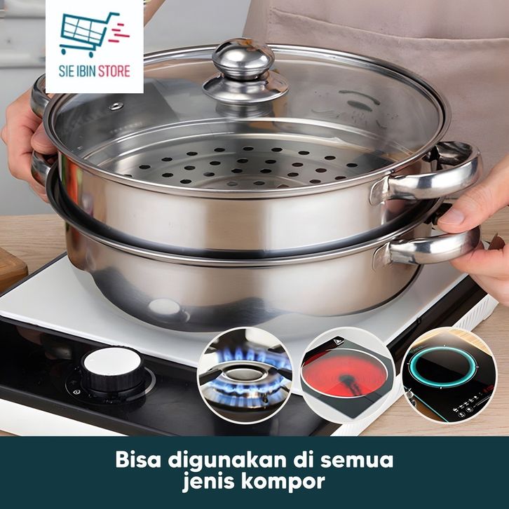 TERMURAH PANCI KUKUS 2 TINGKAT TUTUP KACA 28CM STEAMER STAINLESS STELL Dandang kukusan Gratis Ongkir -jMS ufogs