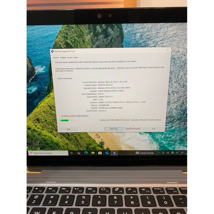 Laptop 2in1 Dell latitude 7200 i7 gen 8 Ram 16gb ssd 256 touchscreen ,keyboard bisa dilepas pasang second