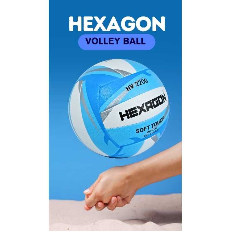 BOLA VOLI ORIGINAL HEXAGON HV 2200 PAKET LENGKAP GRATIS PENTIL, JARING POMPA & TAS GYMSACK