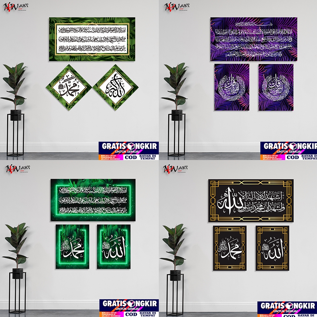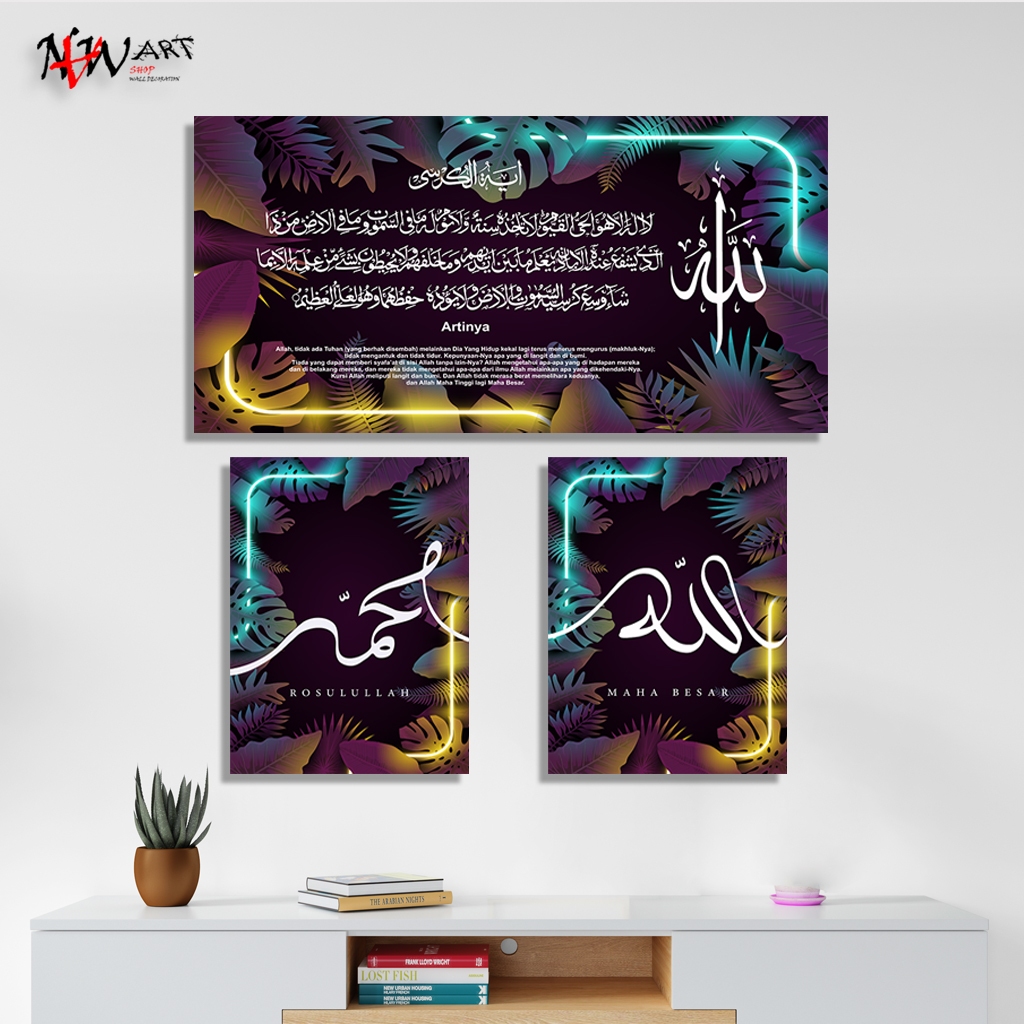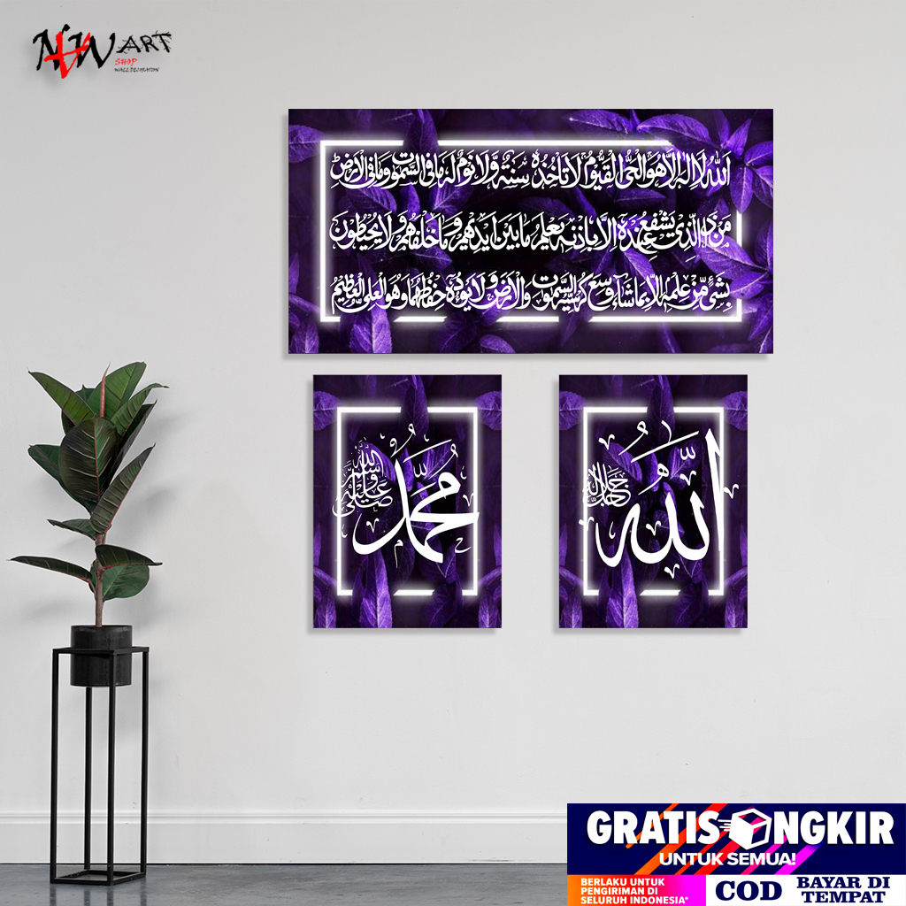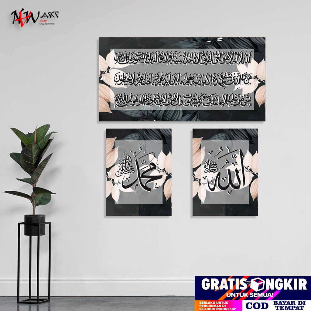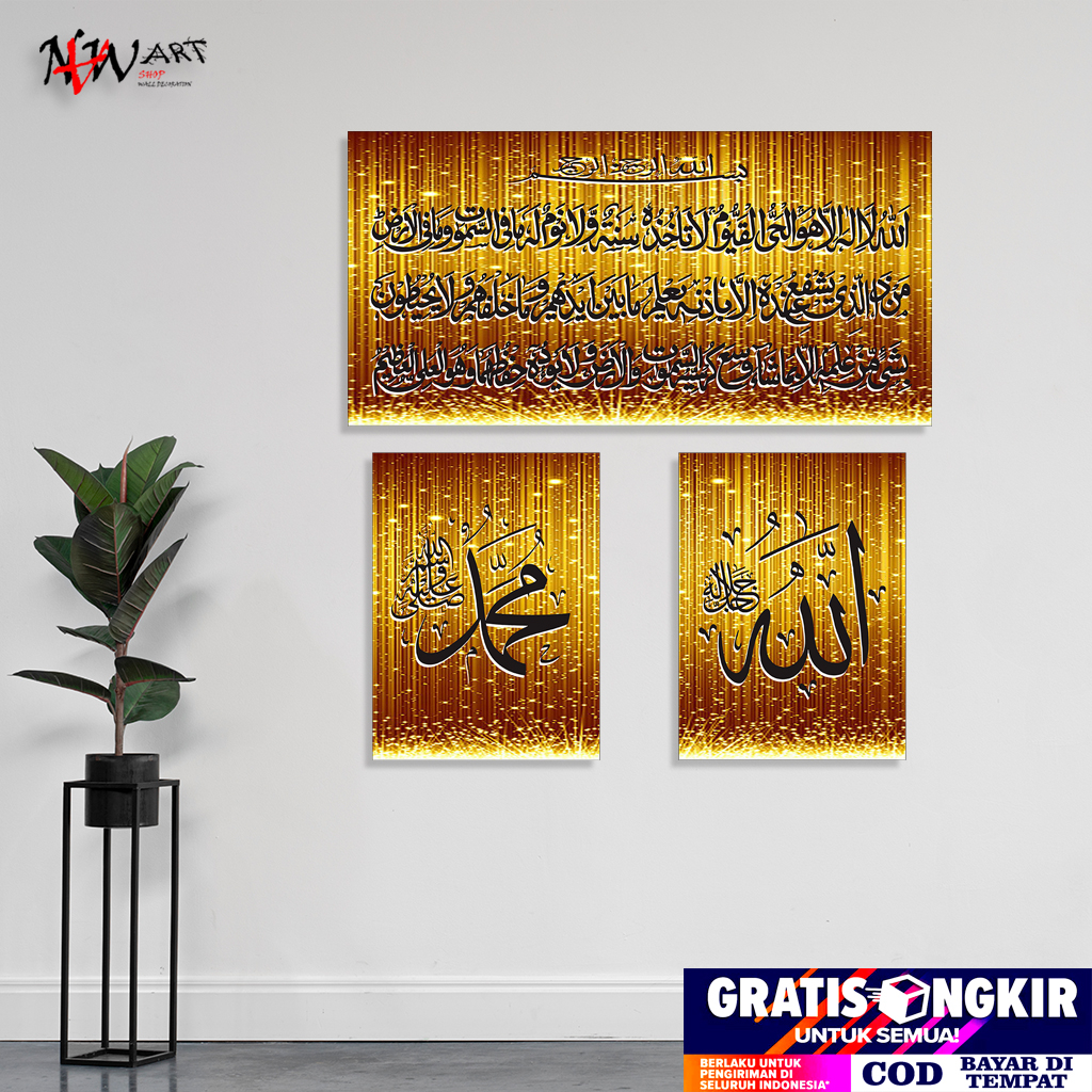 Hiasan Dinding Islami / Jumbo / Hiasan Ruang Tamu / Hiasan Kamar Tidur / Kaligrafi - Allah & Muhammad & Ayat Kursi / Bes