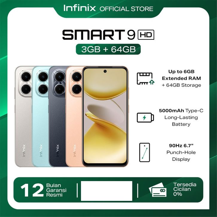 INFINIX SMART 9 HD 3/64GB - UP TO 6GB EXTENDED RAM - 6.7 INCH 90HZ PUNCH HOLE DISPLAY - HELIO OCTA CORE