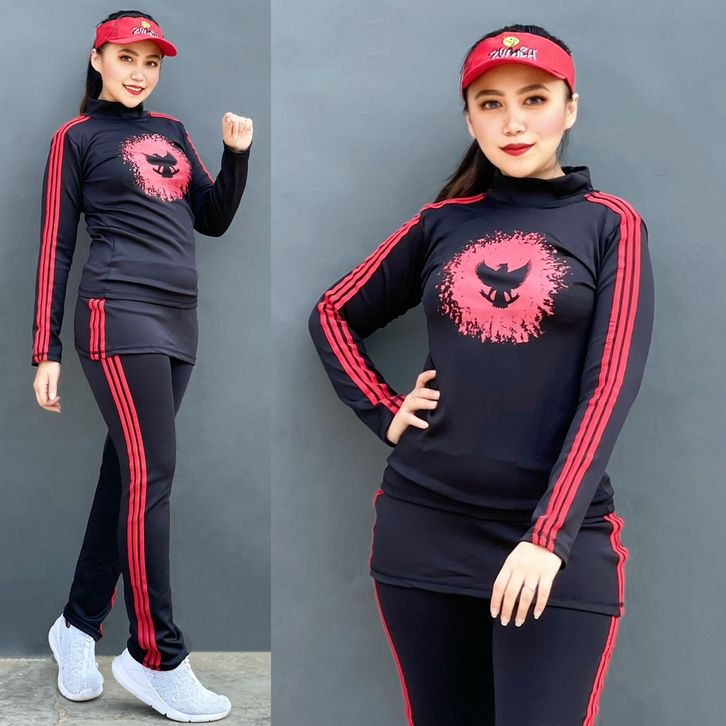 Baju Jumba Setelan Baju Senam Aerobic Zumba Gym Fitness Jogging Olahraga Hijab Muslim MERAH PUTIH GARUDA
