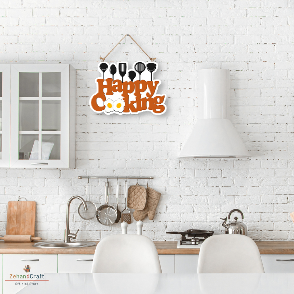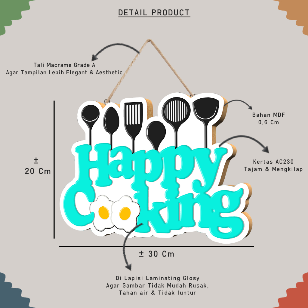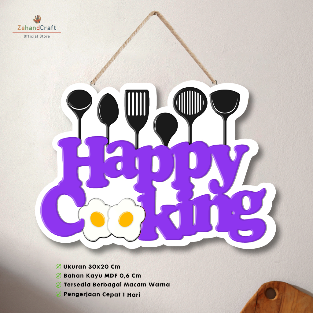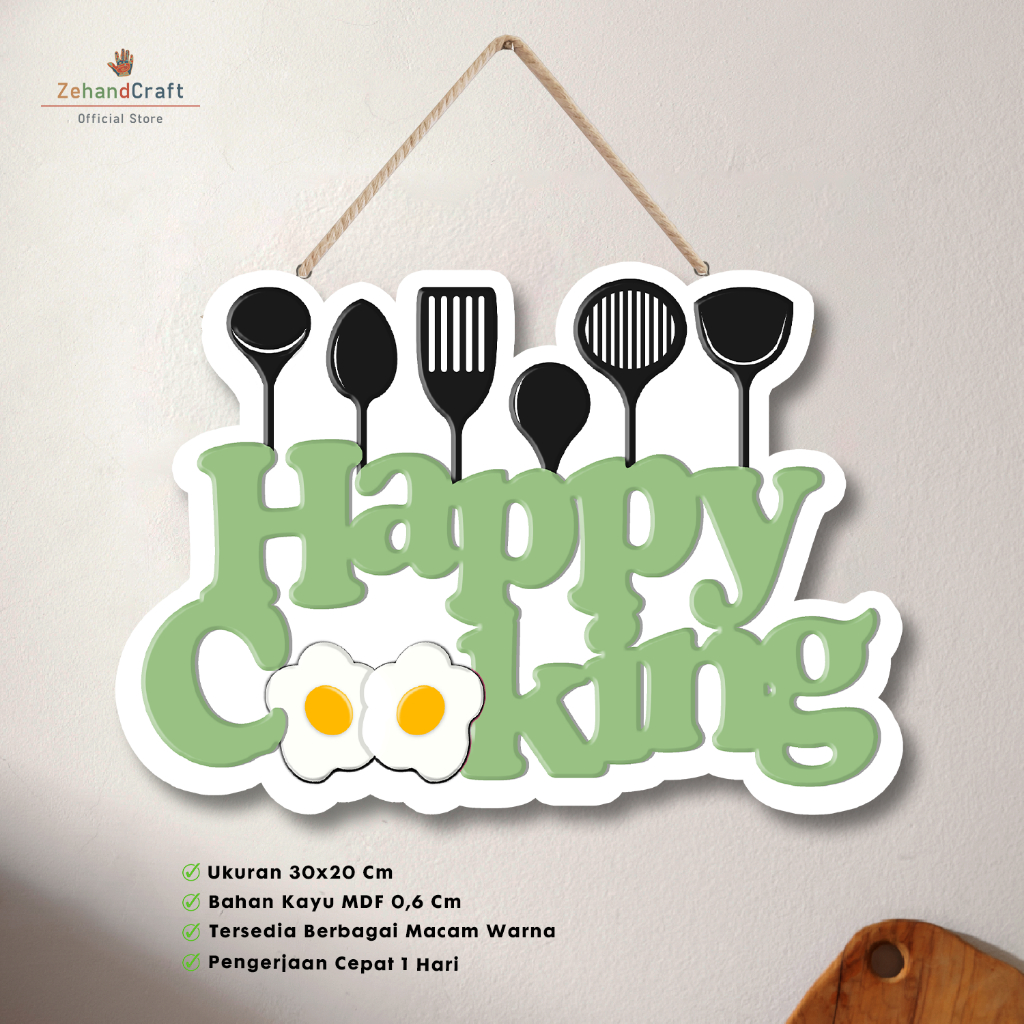 Zehandcraft - Hiasan Dinding Happy Cooking Ukiran Kayu 30x20 Cm