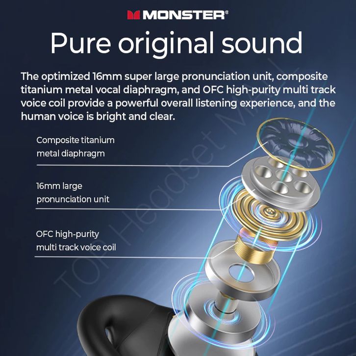 Headset Bluetooth Monster AC100 MH22156 Bone Conductiefinition Call Eon OWS Nirkabel TWS HIFI Stereo Bass