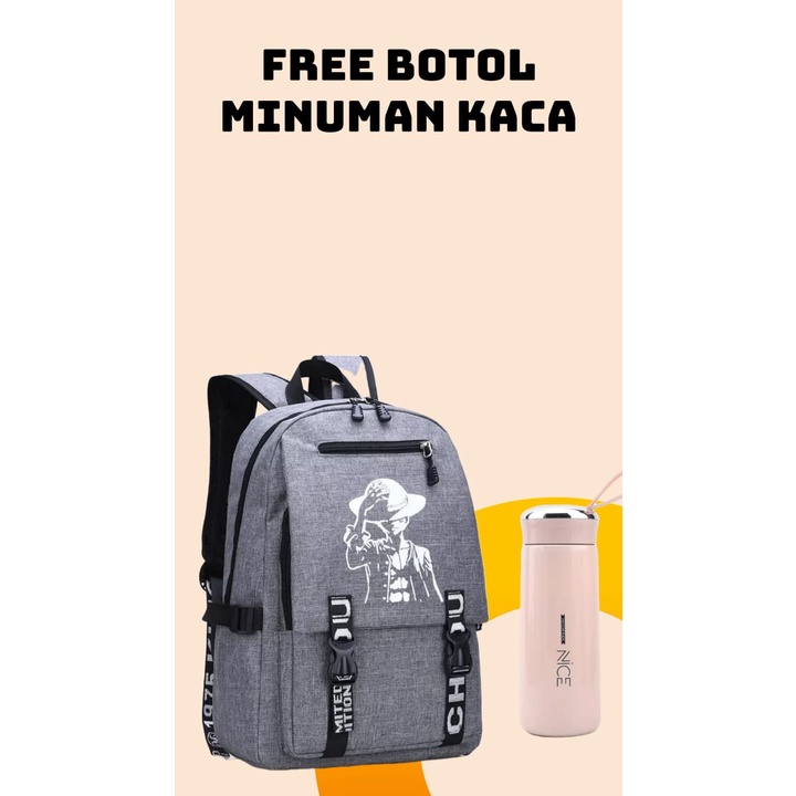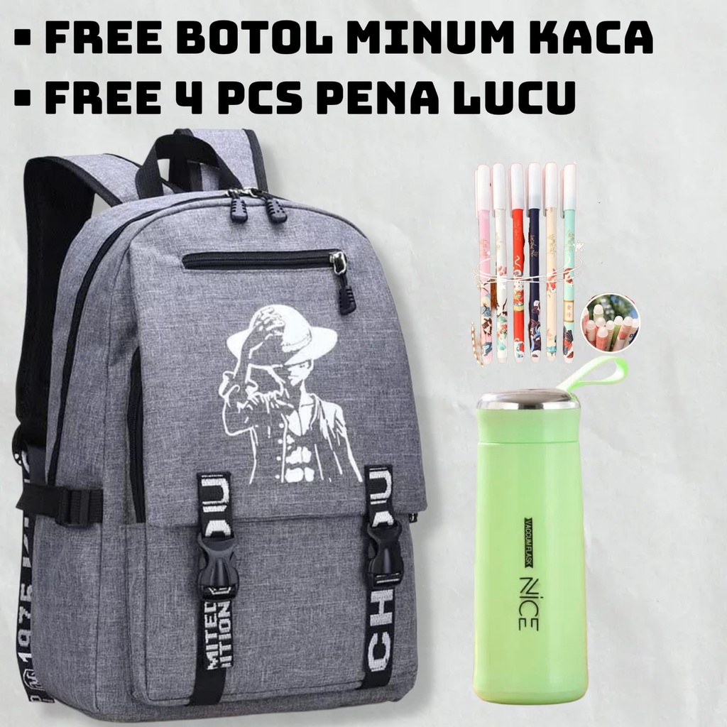 free btl pen jam tas sekolah anak perempuan one piece strawhat after time skip series tas ransel pria unisex keren 2025
