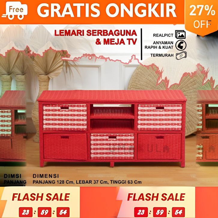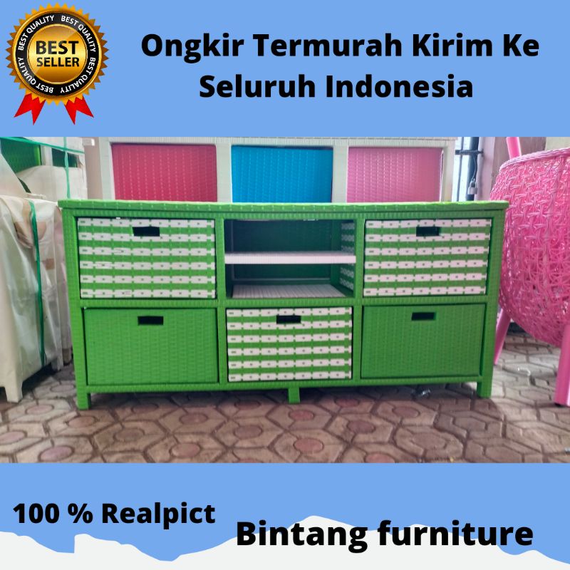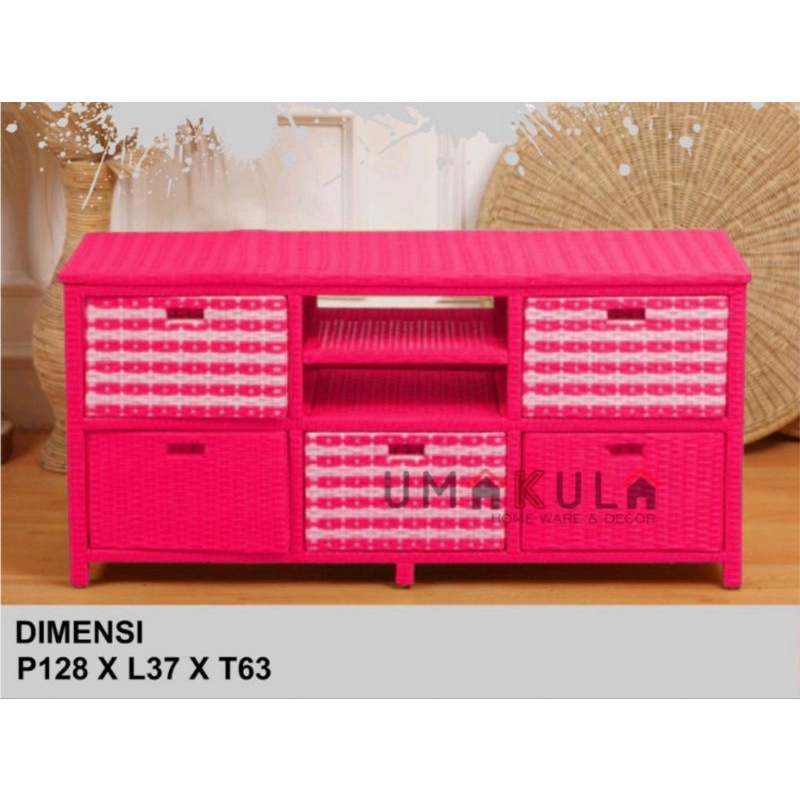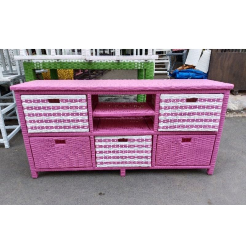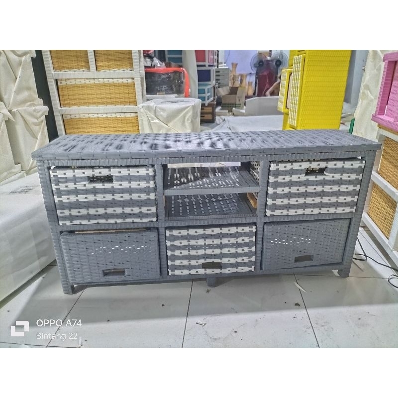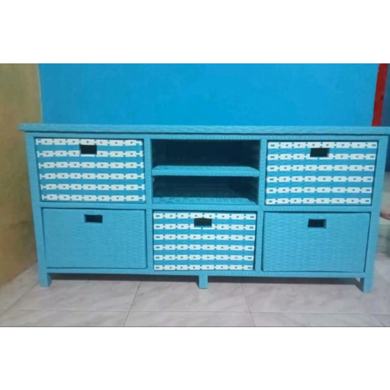 Lemari Rotan Sintetis Meja TV DVD ROTAN SINTETIS 5 LACI RAK Bufet Buffet Kabinet Motif Salur Kokoh