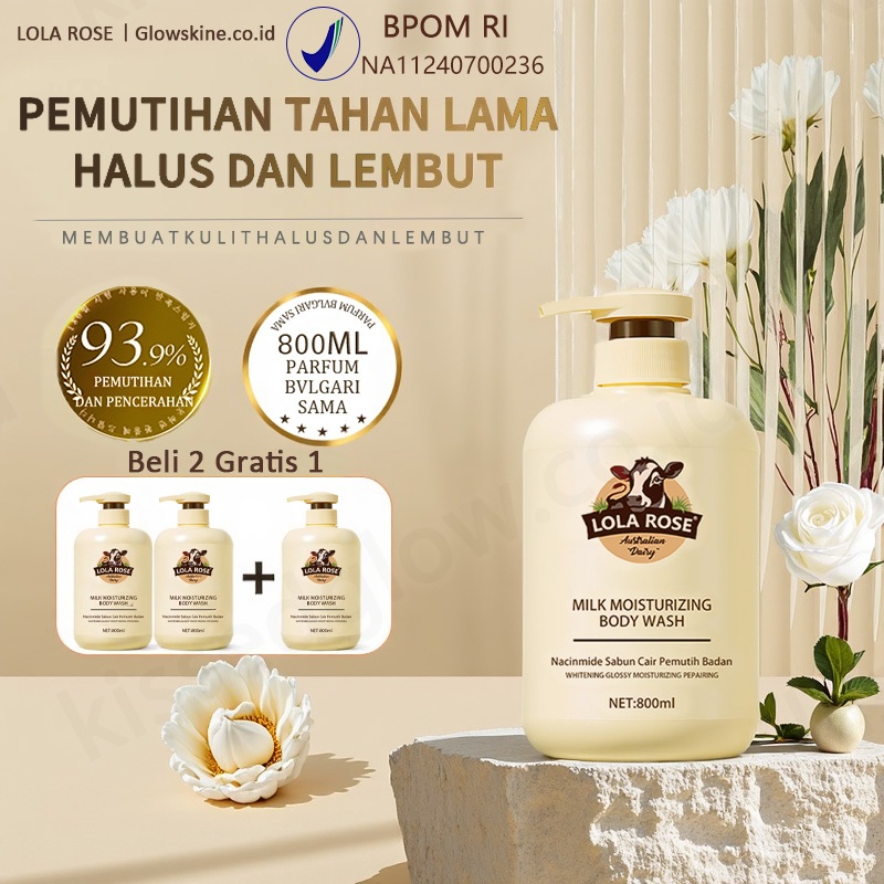BPOM【LOLA ROSE】Sabun Cair Pemutih Badan Permanen Mandi Susu Pemutih Badan Spa 800ml 100% Asli