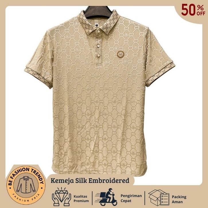 KEMEJA PRIA Silk Embroidered Polo Korean Style T Shirt Bahan Import Berkualitas Premium