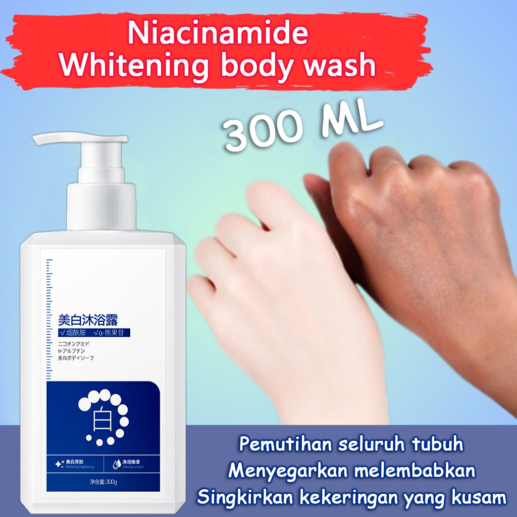 Sabun wangi pria Sabun mandi wangi cair Sabun pemutih tubuh 300ML Niacinamide memutihkan dan melembabkan