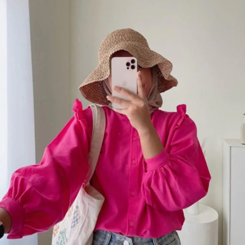 (Gratis Ongkir) Yurim Blouse Ruffle - Atasan Wanita - Kemeja Linen Basic Lengan Panjang