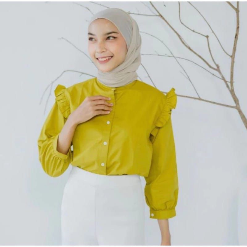 (Gratis Ongkir) Yurim Blouse Ruffle - Atasan Wanita - Kemeja Linen Basic Lengan Panjang