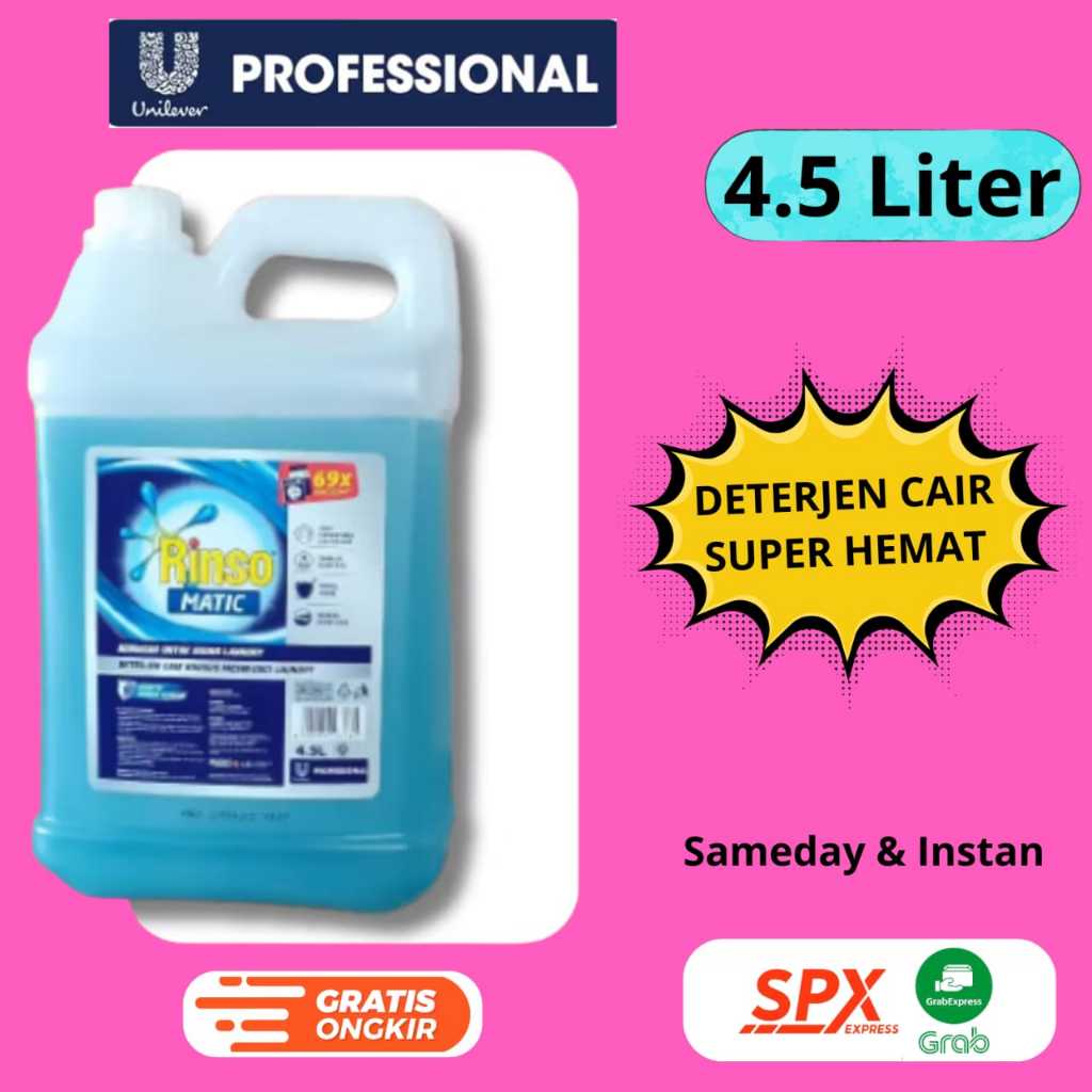 Rinso matic 4.5 liter laundry kiloan dan rumahan deterjen cair super hemat