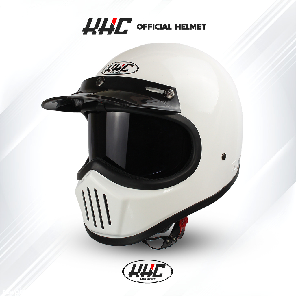 [Star] Helm Cakil KHC HITAM DOFF Helm Retro Full Face SNI Pet Inner Visor FRE GOGLE+ST