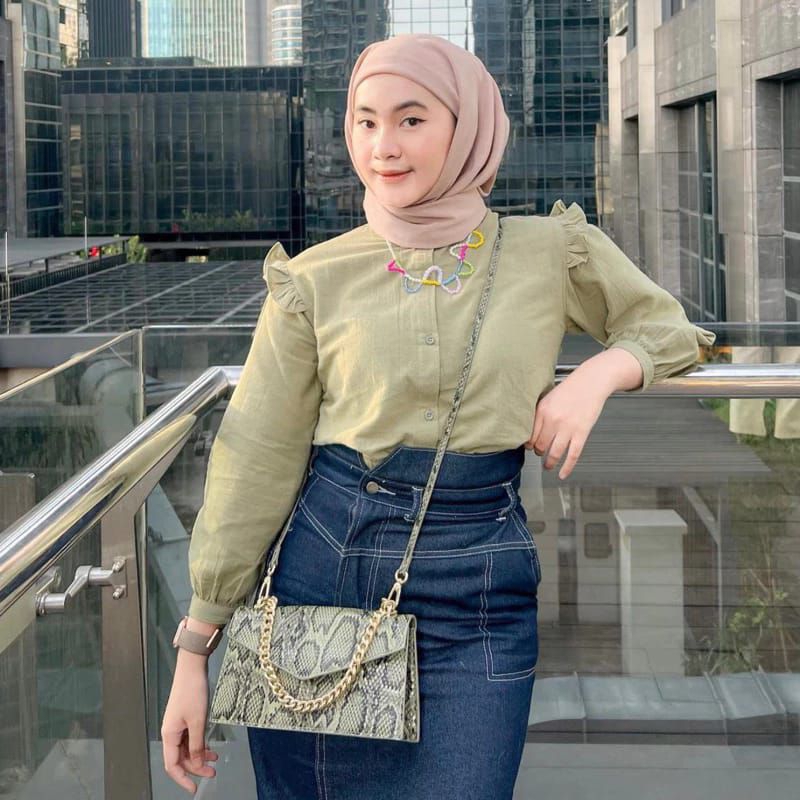 (Gratis Ongkir) Yurim Blouse Ruffle - Atasan Wanita - Kemeja Linen Basic Lengan Panjang